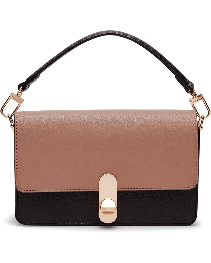 - A potent blend of elegance and functionality, the Anne Klein® E/W Convertible Flap Shoulder Bag with New Turnlock is perfectly suited for casual as well as formal events. Designed with a turnlock front closure, this structured bag displays two interior open compartments and one slip pocket. It comes with one detachable top handle and one detachable and adjustable crossbody strap for optimal styling options.